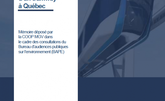 Le monorail suspendu de la COOP MGV est la solution Le 9 novembre 2020, le BAPE a présenté son rapport sur le Projet de construction d’un tramway à Québec. Le BAPE « considère que l’initiateur devrait procéder à une nouvelle analyse des options au projet permettant, le cas échéant, de développer un projet qui réponde davantage aux défis de mobilité sur le territoire, dans une perspective régionale. » Il recommande donc que le projet ne soit pas autorisé en l’état. Le BAPE invite la Ville de Québec à refaire ses devoirs et à analyser les autres modes de transport qui pourraient être utilisés au lieu du tramway. Ce que reproche le BAPE c’est le manque de vision Ce que dit le BAPE c’est que le tramway ne vise qu’un petit parcours de 22 kilomètres, alors que les besoins de […]