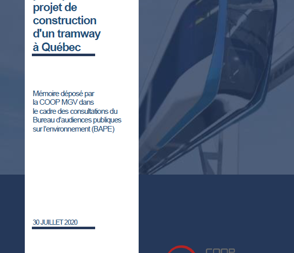 La COOP MGV, en parfaite harmonie avec les groupes de citoyens et environnementaux, souscrit entièrement à l’aménagement d’un réseau de transport collectif structurant pour la ville de Québec. Loin d’être opposée au concept, elle croit simplement qu’il existe une meilleure solution, moins chère que le tramway.